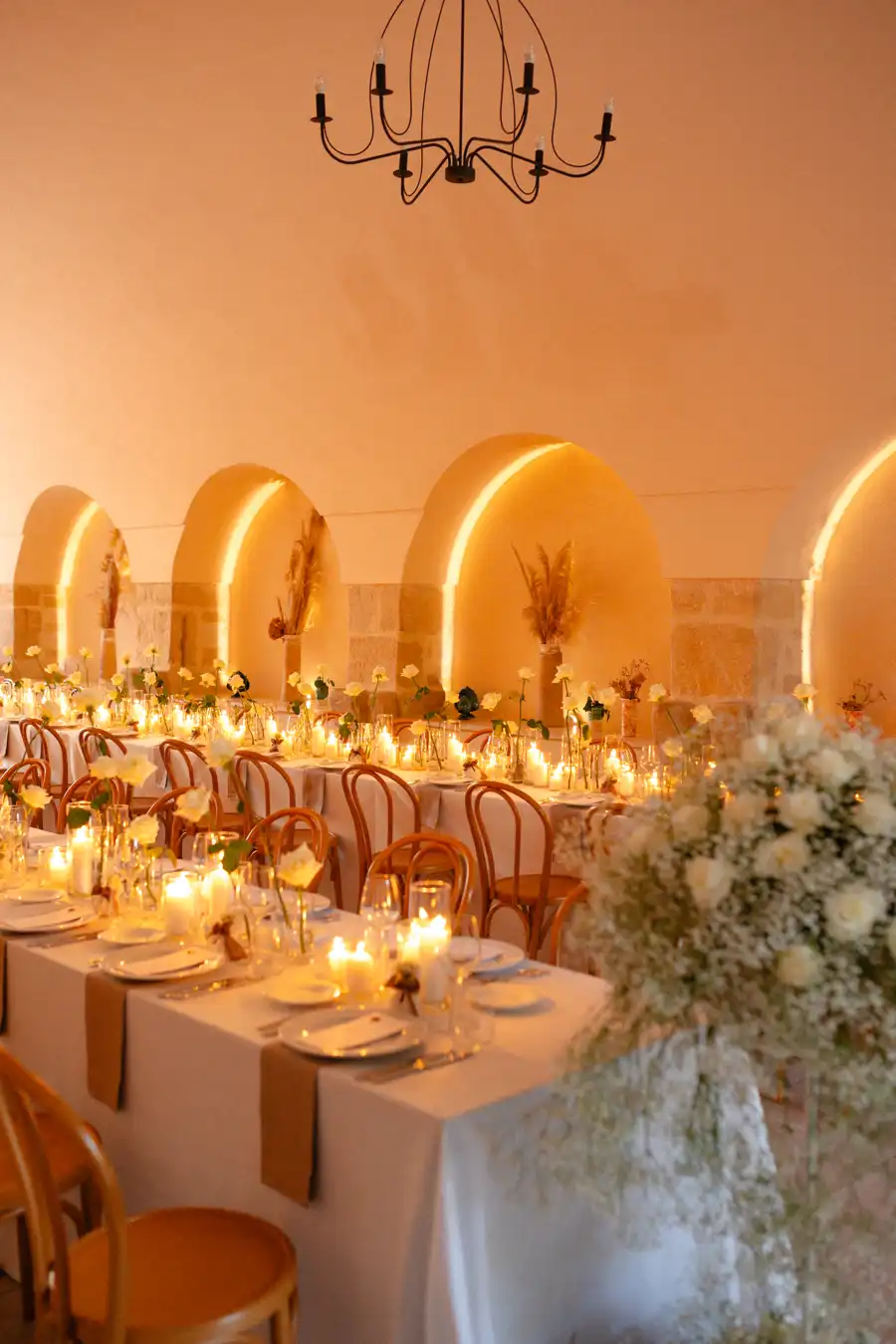 From the ceremony held in the sun-dappled courtyard to heartfelt moments shared by loved ones, the day unfolded like a poem. The estate’s courtyards, candle-lit tables, and live music created a warm, inviting atmosphere that embraced every guest.